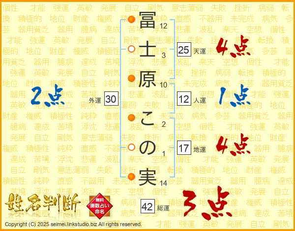 冨(12画)士(3画)原(10画) こ(2画)の(1画)実(14画)