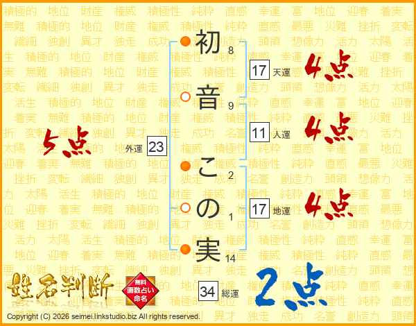 初音この実さんの天運は17画の4点!