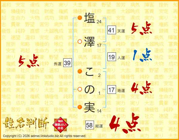 塩澤この実さんの外運は39画の5点!