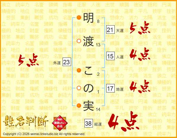 明渡この実さんの総運は38画の4点!