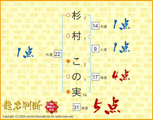 杉村この実さんの総運は31画の5点!