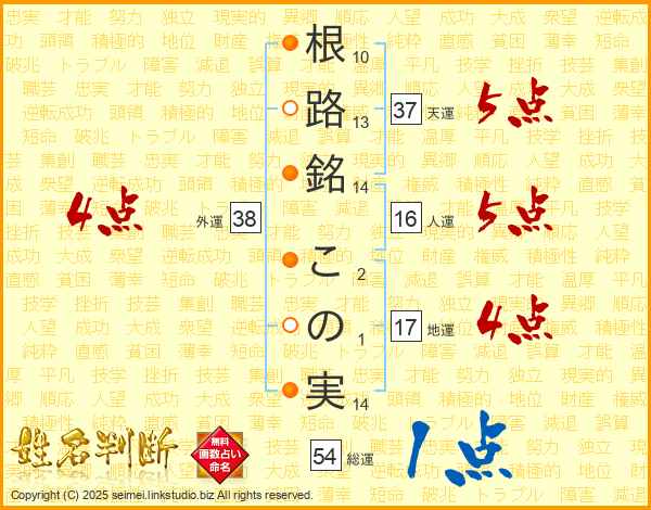 根路銘この実さんの総運は54画の1点!