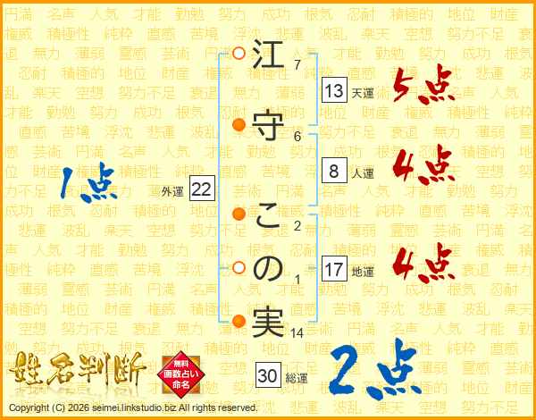江守この実さんの総運は30画の2点!