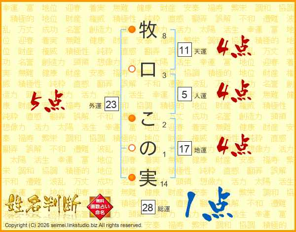牧口この実さんの外運は23画の5点!