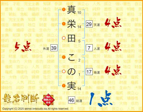 真(10画)栄(14画)田(5画) こ(2画)の(1画)実(14画)