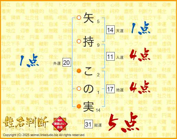 矢持この実さんの総運は31画の5点!