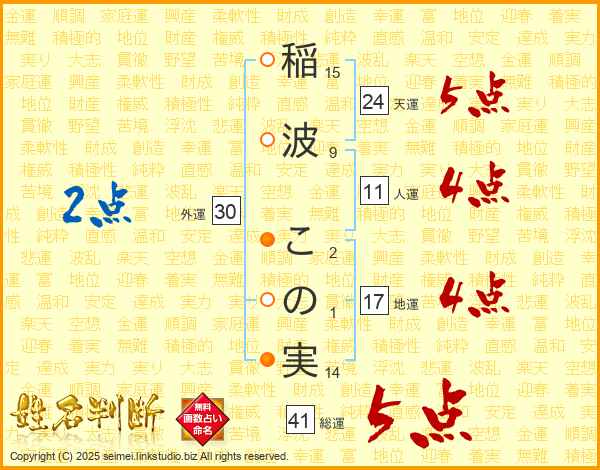 稲(15画)波(9画) こ(2画)の(1画)実(14画)