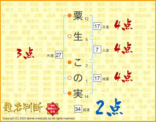 粟生この実さんの総運は34画の2点!