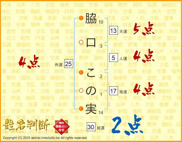 脇口この実さんの天運は13画の5点!