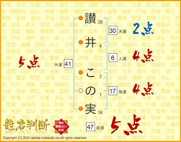 讃井この実さんの総運は47画の5点!