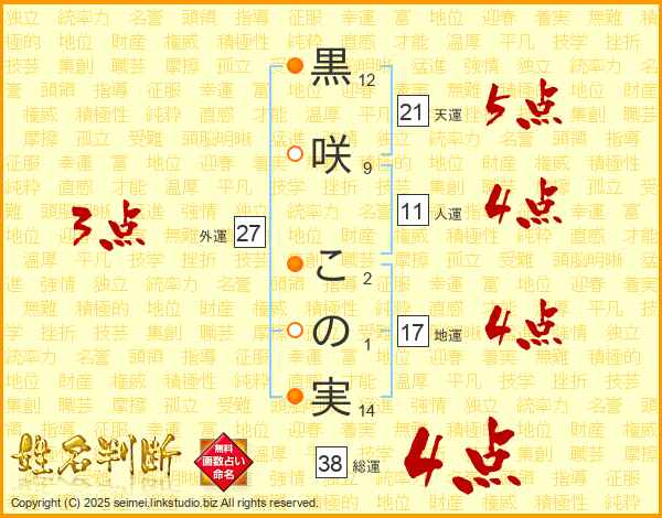 黒咲この実さんの総運は38画の4点!