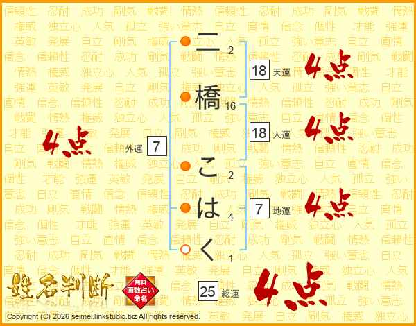 二橋こはくさんの総運は25画の4点!