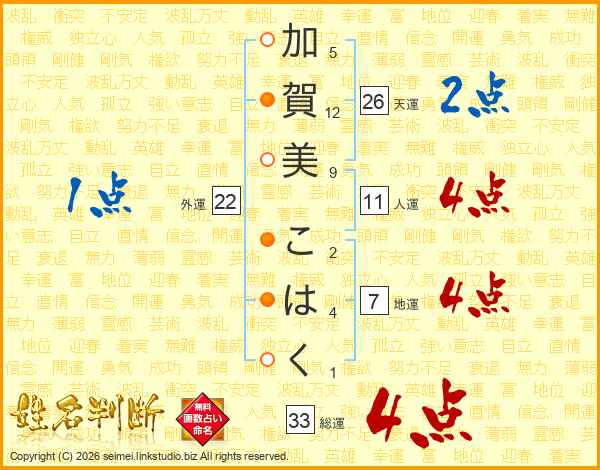 加賀美こはくさんの天運は26画の2点!