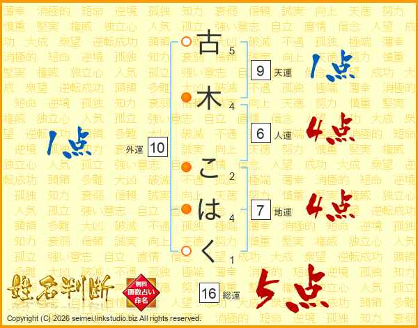古(5画)木(4画) こ(2画)は(4画)く(1画)