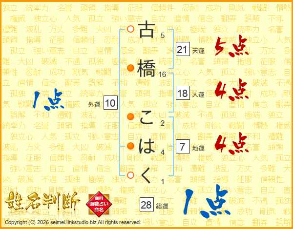 古橋こはくさんの天運は21画の5点!