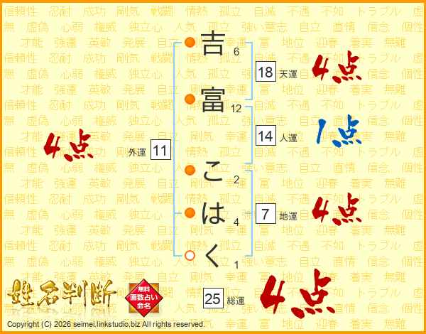 吉富こはくさんの総運は25画の4点!