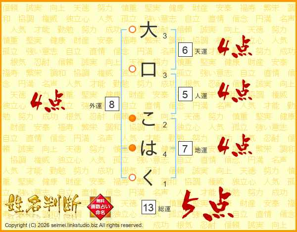 大口こはくさんの総運は13画の5点!
