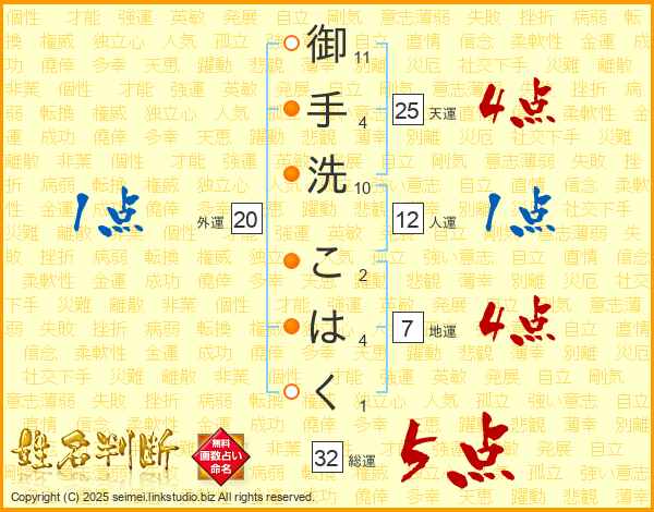 御手洗こはくさんの天運は25画の4点!