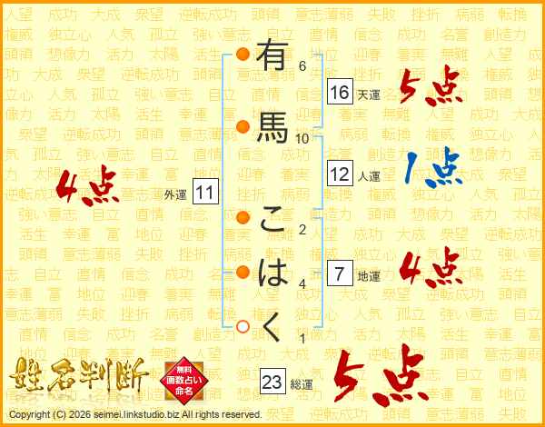 有馬こはくさんの天運は16画の5点!