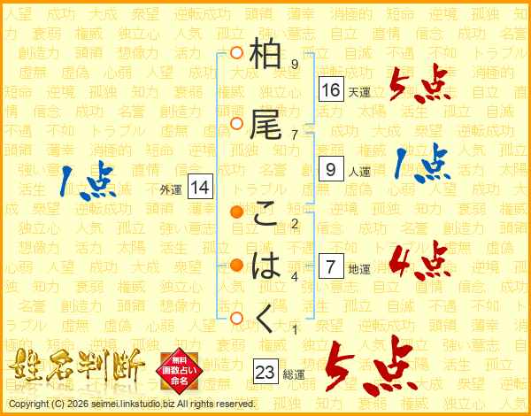 柏尾こはくさんの総運は23画の5点!