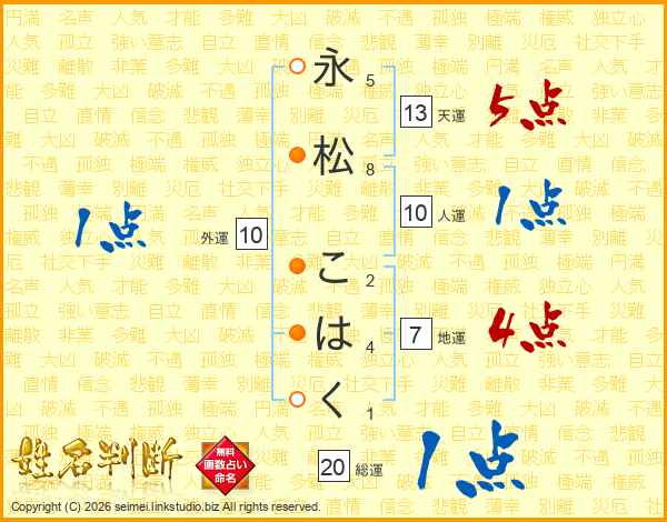 永(5画)松(8画) こ(2画)は(4画)く(1画)