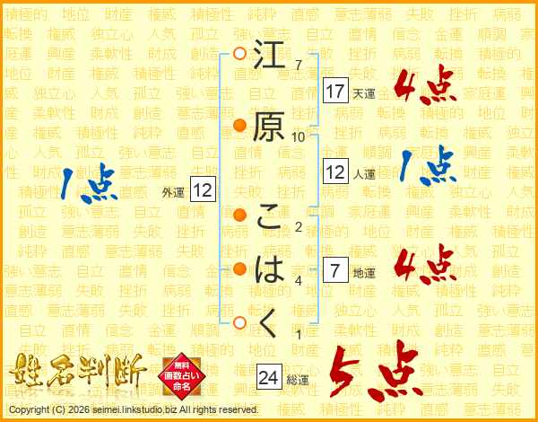 江原こはくさんの総運は24画の5点!