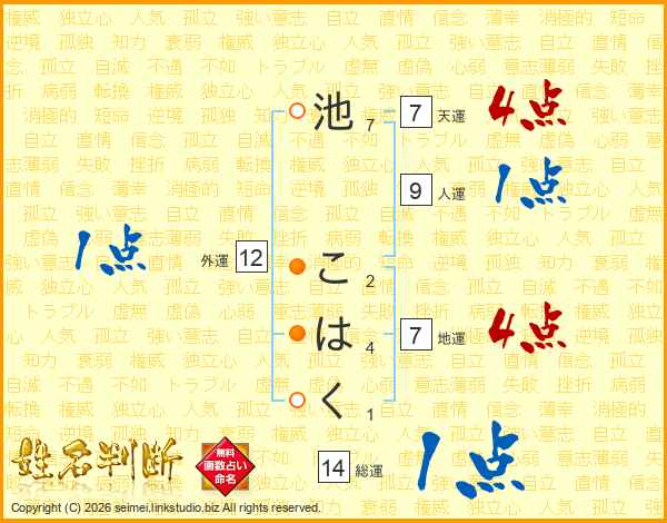 池こはくさんの総運は14画の1点!