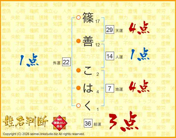 篠善こはくさんの地運は7画の4点!