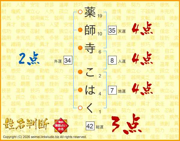 薬(19画)師(10画)寺(6画) こ(2画)は(4画)く(1画)