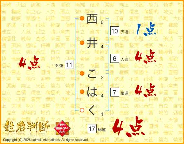 西井こはくさんの人運は6画の4点!