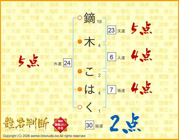 鏑木こはくさんの天運は23画の5点!