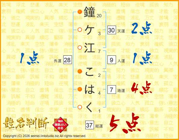 鐘ケ江こはくさんの総運は37画の5点!