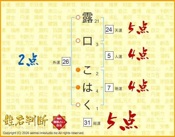 露口こはくさんの総運は31画の5点!