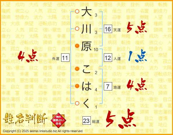大川原こはくさんの地運は7画の4点!