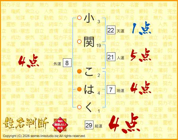 小関こはくさんの総運は29画の4点!