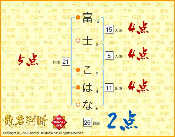 富士こはなさんの総運は26画の2点!