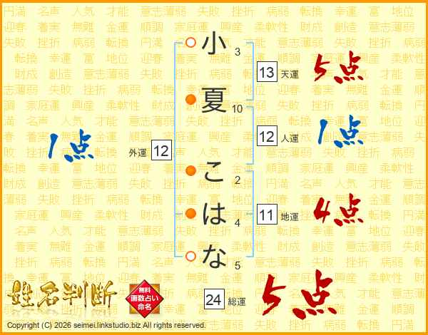 小夏こはなさんの総運は24画の5点!