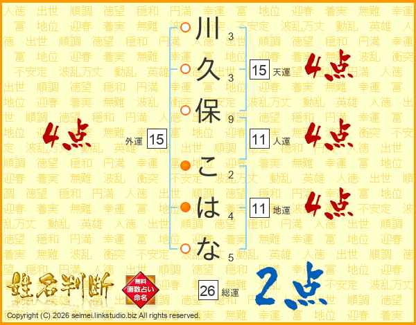 川久保こはなさんの総運は26画の2点!