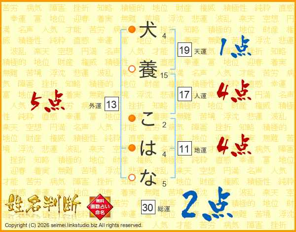 犬養こはなさんの天運は19画の1点!