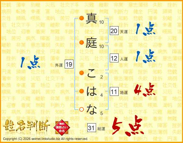 真庭こはなさんの総運は31画の5点!