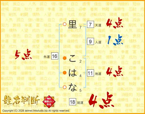 里こはなさんの総運は18画の4点!