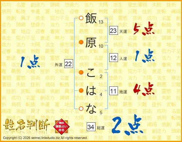 飯原こはなさんの総運は34画の2点!