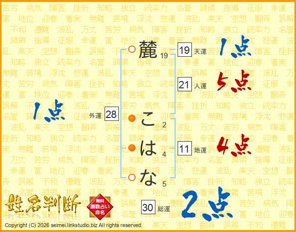 麓こはなさんの総運は30画の2点!
