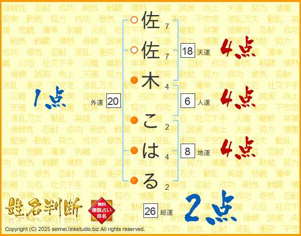 佐(7画)佐(7画)木(4画) こ(2画)は(4画)る(2画)