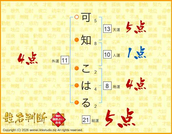 可知こはるさんの総運は21画の5点!