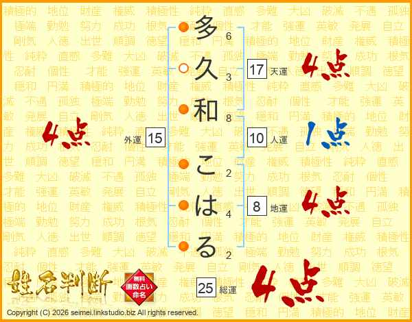 多久和こはるさんの総運は25画の4点!