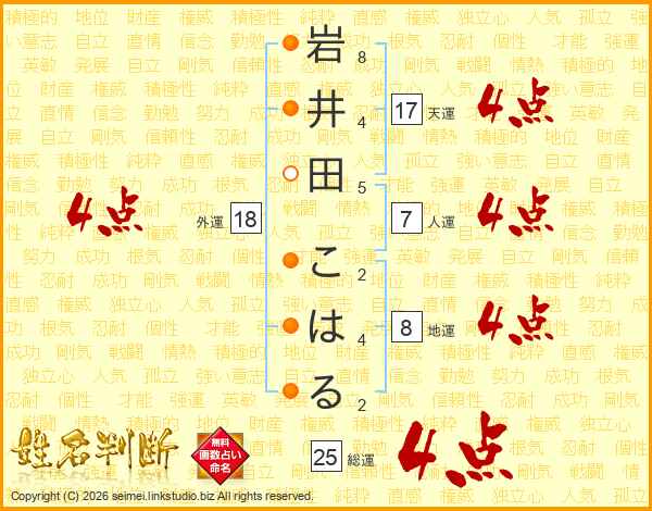 岩井田こはるさんの外運は18画の4点!
