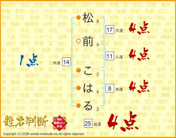 松(8画)前(9画) こ(2画)は(4画)る(2画)