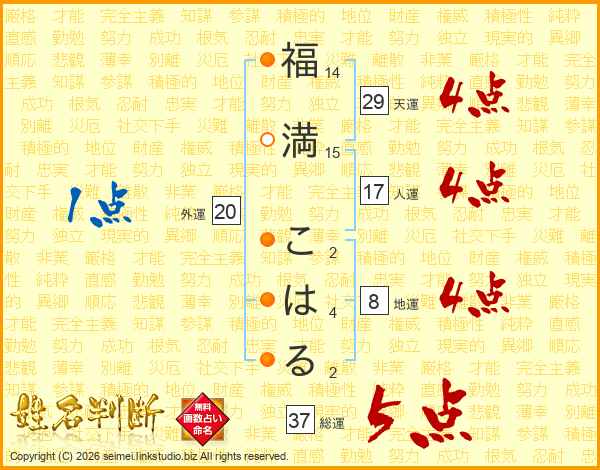 福(14画)満(15画) こ(2画)は(4画)る(2画)