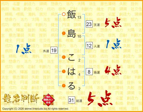 飯島こはるさんの総運は31画の5点!